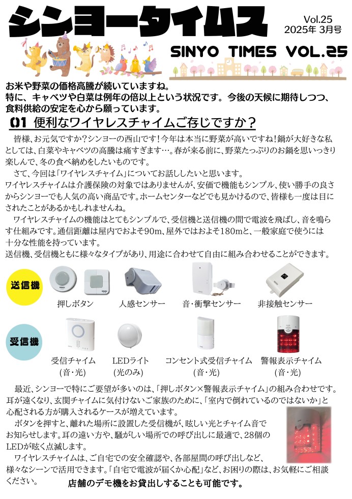 2025/03/04シンヨーケアサービス 情報誌「シンヨータイムスVol.25」を公開しました。